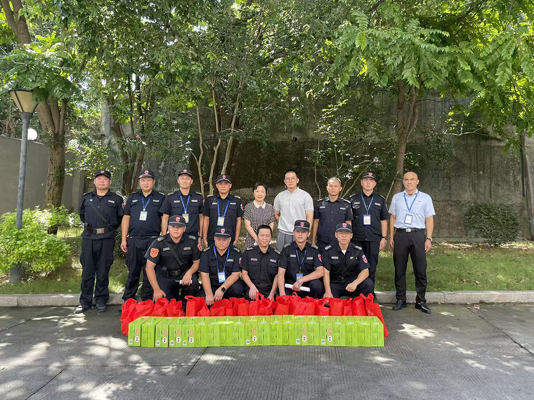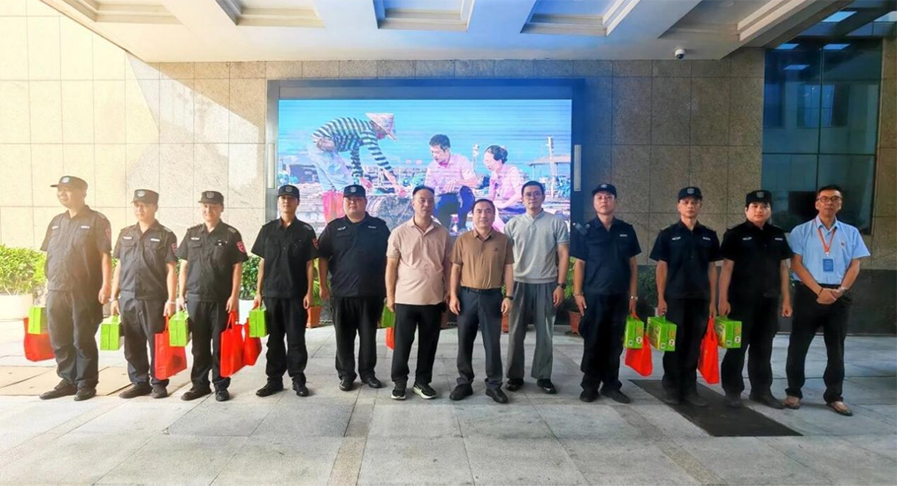 炎炎盛夏热浪袭人,连日高温给坚守岗位的一线保安员带来了严峻考验。为保障广大职工健康安全,传递企业关怀,国资集团领导相继到中国五大联赛网(下文简称“福州保安公司”)执勤网点开展高温慰问,为奋战在高温岗位的保安员撑起一片“绿荫”。福州保安公司主持工作负责人陈笛、总经理钟季、副总经理刘峰等陪同。